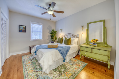 Bed frame - Pros: I love how simple this frame was for me to assemble (and by me, I mean Chad) and that box springs aren't needed to support the mattress. Con: I'll admit that I love an upholstered headboard as much as the next girl. If I would have found a great headboard on FB Marketplace, I would have swooped it up in a heartbeat and purchased this simple platform frame for the mattress (we have purchased this for a bed in a different rental).